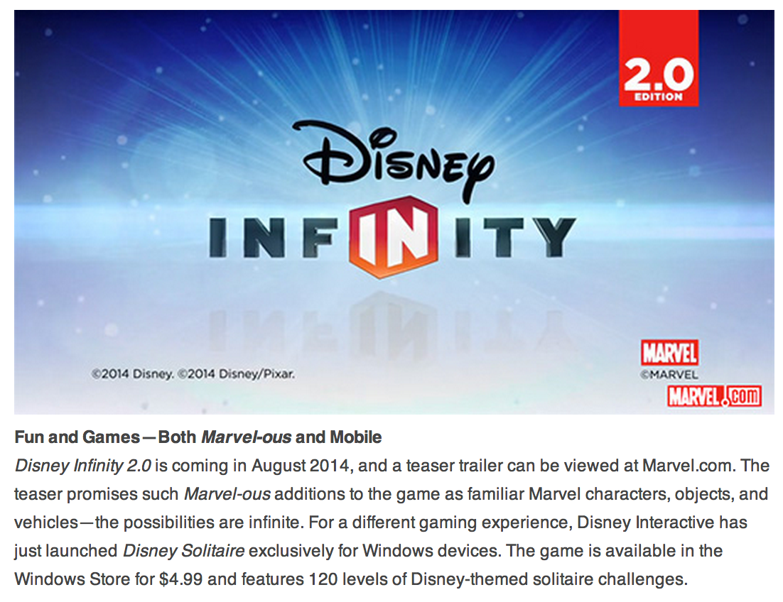 “In D23′s News Briefs published April 15, 2014, we erroneously reported about the launch of the next chapter of Disney Infinity. This information was incorrect. More news about Disney Infinity will be shared on April 30, and we hope you will check back for that update. For the latest from Disney Infinity click here, and Get Ready to Assemble.”