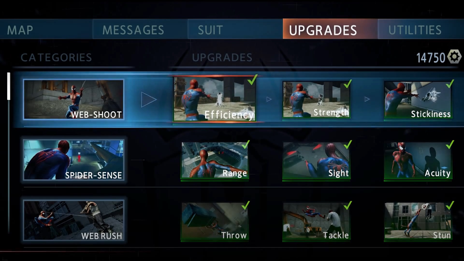 Outside of the tasks you’ll do to keep your heroic meter satisfied, one of the only other side-quests outside of Superman 64 style ring races are the hidden enemy lairs that will pop up on the map and they’re a welcome addition but few in number. You’re transported to a small level where the goal is to sneak around to reach Oscorp tech that will lead to a new costume. Having unlockable costumes is nothing new to a Spider-Man game, but an interesting element here is that the various suits have different attributes and can be leveled up by playing with them. One of the pre-order bonus suits for example, the Iron Spider, has resistance to ballistics and is great for the combat challenge activities, while the Scarlet Spider has added “coolness” (I’m not kidding) to help your heroic meter deplete faster. The costume system, much like the trigger swapping web swinging, needs to make its way into future Spider-Man games.