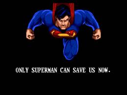 In between stages in “The Death and Return of Superman” the player was given a black screen with some scrolling text that may contain an image: