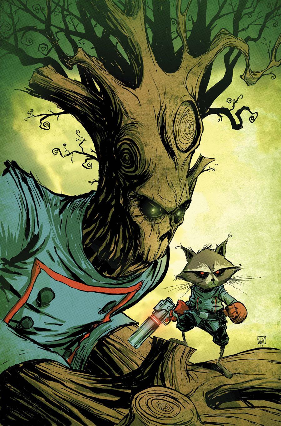 In keeping in line with what I feel makes some of the best comic book games: taking a comic character and then making them fit into the right game type, I kept thinking when reading the excellent pre-release buzz for Rocket Raccoon #1 that it would be so great to have a Rocket Raccoon game spliced in with the trapping of the Ratchet and Clank series. It has all the right elements in place: a big gun-toting, jet pack wearing, space ship piloting animal creature, that just happens to also have a partner of his own, I’m of course speaking of Groot.