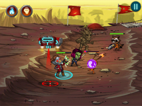 When I first saw the art for the characters in this game, I was taken back at first but warmed up to the chibi designs rather quickly. Each Guardian animates well and are just the right size for how many heroes and enemies fit in the arena space. The winning animations, again especially Rocket, add a degree of personality to each of the combatants as well.