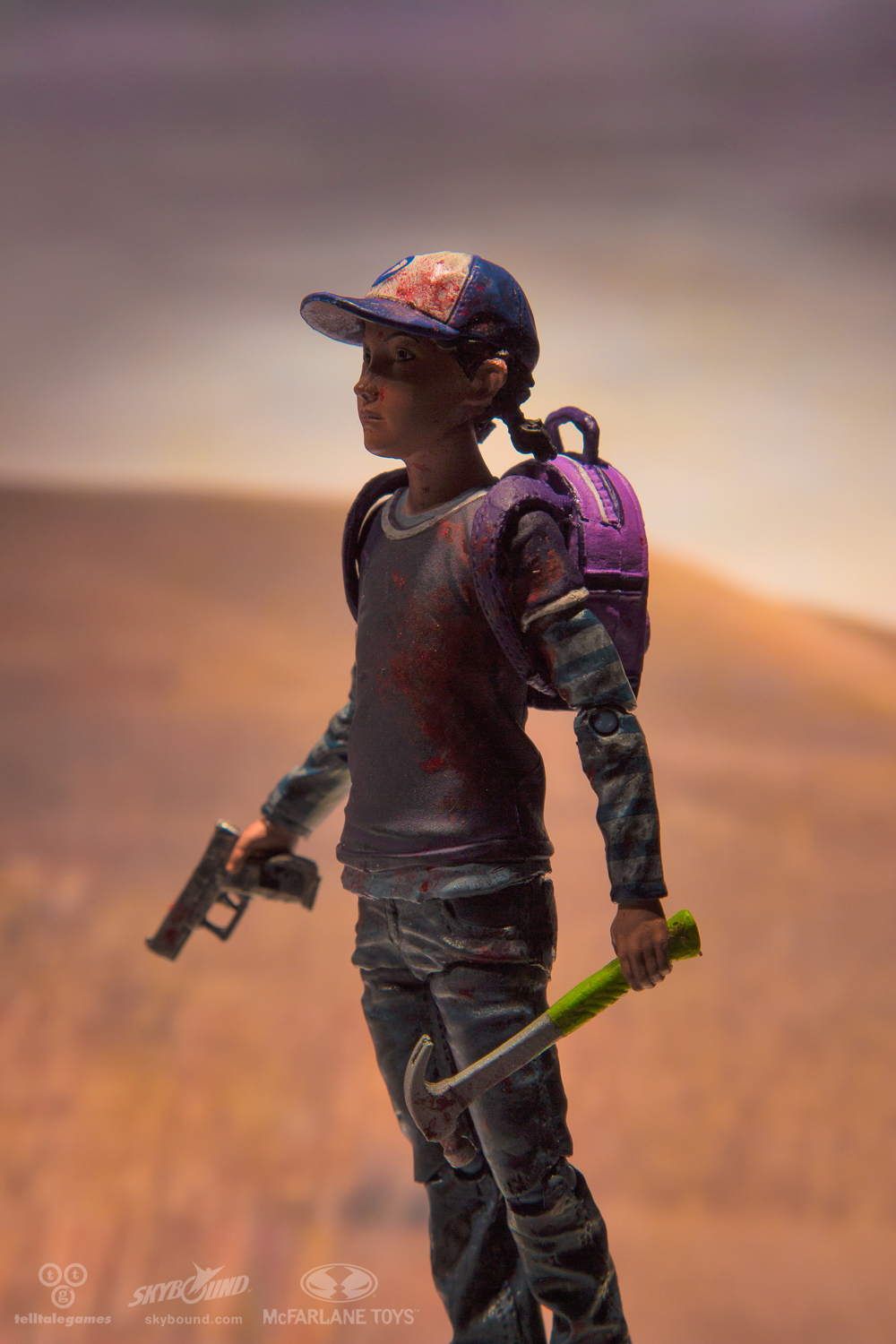 Skybound and Telltale will team up with McFarlane toys to produce an action figure based on the most popular and beloved character in the series, Clementine, who will come with her backpack, pistol and hammer accessories. It will also arrive in two variations: One in full color with the other being splattered in blood. Here’s the first images of the figure: