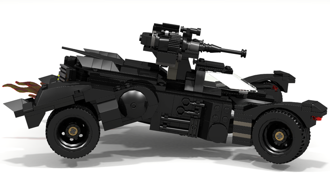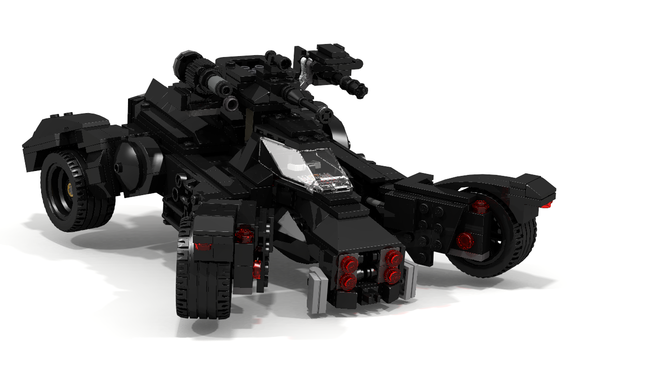 One of the biggest selling features of next year’s Batman: Arkham Knight is the inclusion of The Dark Knight’s trademark vehicle, the Batmobile, which will also mark a first for the series. Not content with waiting until summer of next year, user ItsTheJester created a replica of the Batmobile as it will appear in Batman: Arkham Knight within the LEGO Digital Designer suite. The model uses 684 pieces, the majority of which are black (the rest perhaps being dark shades of gray.)