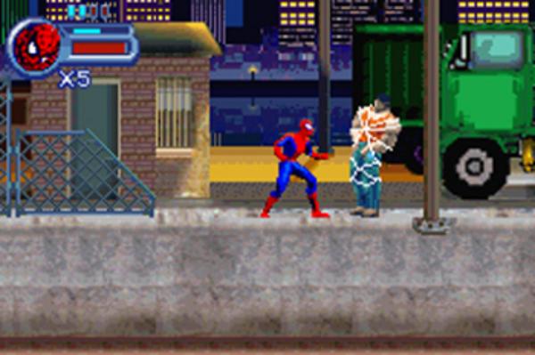 Perhaps the reason for the lack of difficulty in the bosses is due to the fact that Spider-Man controls very well. You can do everything a spider can like adhere to any surface, swing on webs simply by jumping and hitting the “A” button and take out thugs with simple punches. The triggers on the console allow you to fire an impact web and a capture web, the latter of which is one of the most important tools in your arsenal for taking out regular stage enemies, following up with a flurry of punches. The abilities you pick up don’t require any additional inputs, merely adding passive abilities or more web fluid, which is a good thing because it doesn’t over burden the player with too many inputs that the GBA simply doesn’t have.