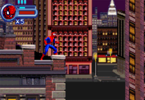 The levels themselves are fairly generic: a dock, a museum, a lab etc. but they do the trick and encourage you to explore them for hidden power-ups that add to Spider-Man’s basic arsenal, even taking another page out of MegaMan in that certain parts of levels are off-limits until you get the right tool, for example an electric proof suit that will allow you safely traverse live wires in the dock stage. Though this is a great addition and adds some replay value to a pretty short game (7 stages in total), I really wish Vicarious Visions would’ve created a game that screamed “WE LOVE MEGAMAN” and had you collecting tools from bosses you defeated. I completed the game with only finding a few additional containers of web fluid and didn’t have that much trouble with it, so I didn’t feel compelled to spend additional time tracking down a new suit to collect something I didn’t really need.