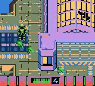 One of my big problems that really killed my enjoyment of the Armorines console game was that the graphics were often too dark to the point of not being able to see where I had to go, and I have an opposite problem with the Game Boy Color game: They’re too bright. It’s nice that the world is bright and colorful, but the graphics lack the necessary details to pick out things from the environment that tell you what can be interacted with and what can’t, which in turn gives this game the same problem as the N64 game in that it’s hard to know where to go. I stumbled around more than one level for a very long time before I had to reach out for help via video walkthroughs where I would find the solution I was looking for and say “wait, that was a ladder?!!”, and head to the next level immediately.