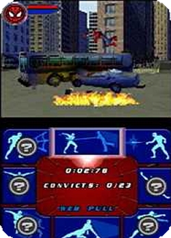 In the early days of the DS, developer were trying to figure out what exactly to do with the lower screen with titles like Super Mario 64 DS and Rayman DS using it as a clunky virtual analog stick for example. Spider-Man 2’s use of the screen is trivial at best, and obnoxious at worst. Mostly it’s used to swap between a few moves like firing web-projectiles and yanking enemies towards you which is fine, but other times it just slows down things, especially in boss fights. When fighting characters like Doc Ock and the Vulture, encounters will come to a complete stop while you tap on projectiles and other things being thrown at you. It would feel less egregious if this did any extra damage to them if you manage to do everything correctly, but instead it’s just a mini-game thrown in to hit the “we have touch screen support” check box.