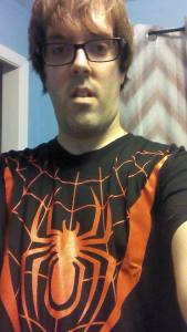Me, three years ago, looking awkward as always in a picture rocking my Miles Morales Spider-Man shirt.
